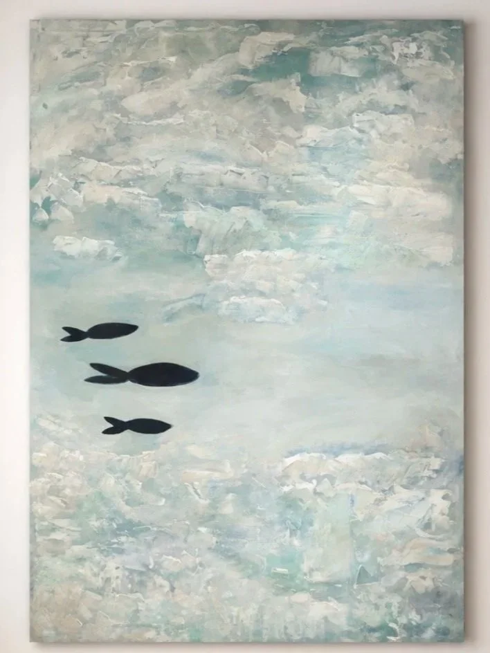 Each Studio Letter includes a simple abstract study on paper connected to a larger painting, accompanied by a handwritten note reflecting on something the Emerald Coast has taught, about movement, steadiness, and the quiet lessons carried by water.